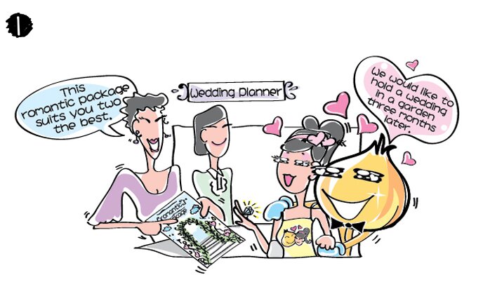 Onion Junior and his girlfriend planned to get married. They therefore went to a wedding planner. Onion Junior said to the boss, “We would like to hold our wedding ceremony at a garden lawn after three months.” The boss replied, “This ‘dreamy beauty’ package best suits you two.”