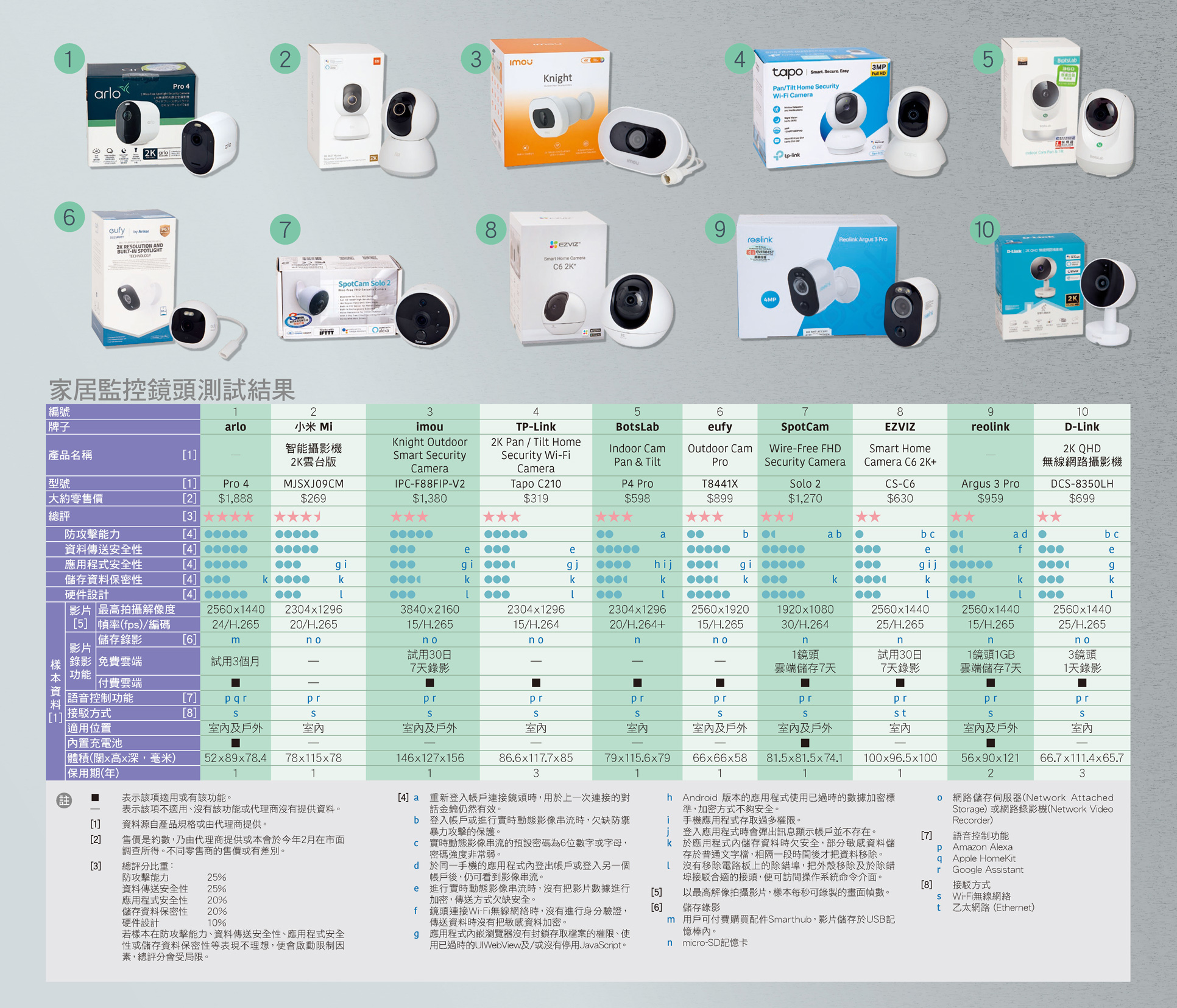 外出工作的家人想时刻关心小孩、长者或宠物,又或担心家居发生意外,家用监控镜头可随时随地透过智能装置观看家人的起居活动,储存摄录的影像,甚至可直接与家人隔空对话。但万一监控镜头存有网络安全的漏洞,影像便有机会外泄构成私隐风险,所以网络安全十分重要。本会首次测试市面10款家用监控镜头的网络安全,结果发现,只有1款样本符合欧洲的网络安全标准,余下9款均存有不同的网络安全问题,例如未能防御骇客的「暴力攻击」、传送资料时没有加密等。此外监控镜头的应用程式亦有待改善,全部样本储存用户资料均不够安全,当中6款更可透过应用程式存取智能装置的档案,用户私隐有外泄风险。