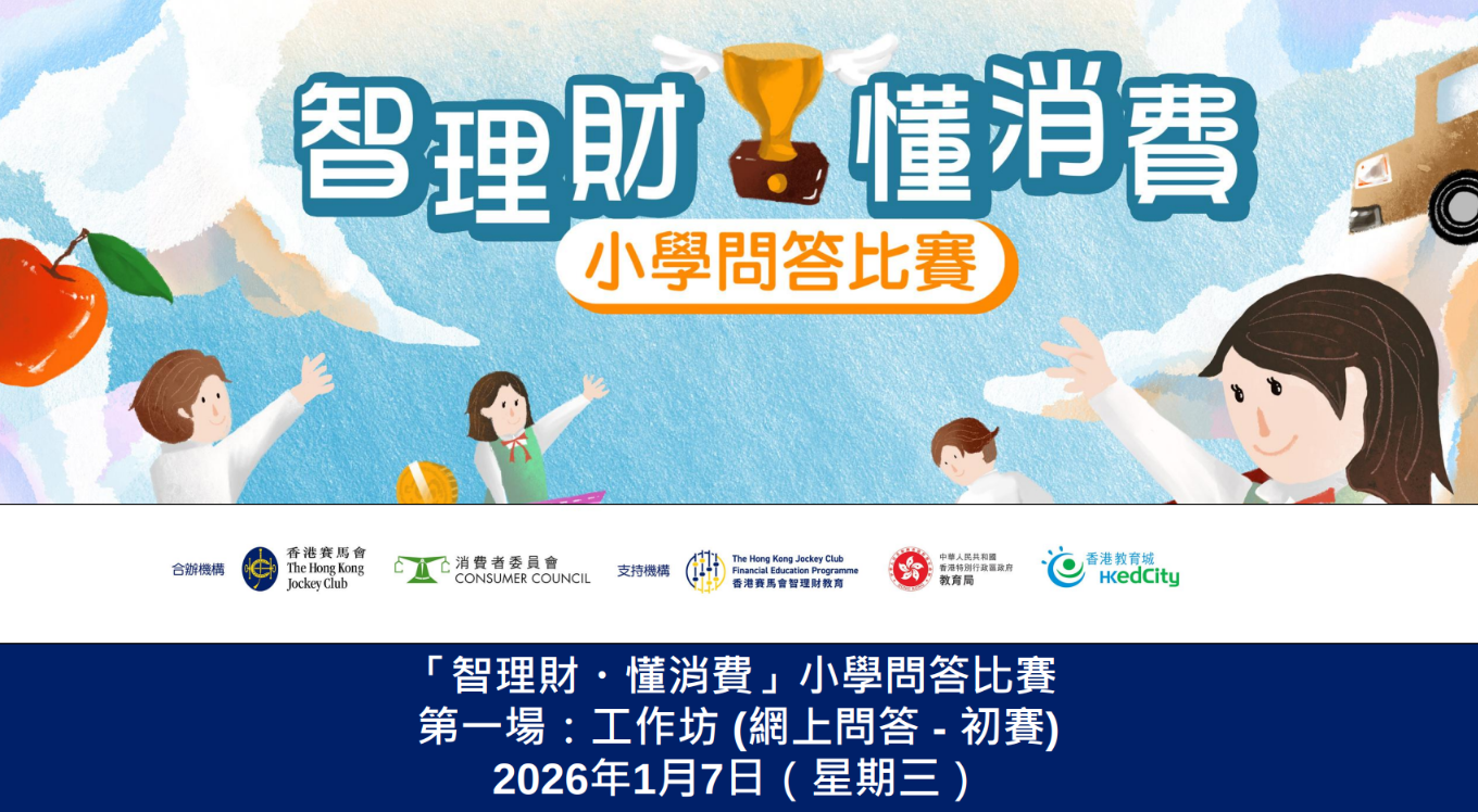 「智理财 ・ 懂消费」小学问答比赛「赛前部署工作坊」已于2026年1月7日圆满举行,由本会教育经理向同学简介比赛详情、参赛细则及八大比赛主题的学习要点,协助老师及同学为比赛作好准备。本会亦特别设计了十张简单易明、围绕比赛主题的信息图,以生动有趣的方式呈现重要的理财及消费概念,让同学掌握相关内容并从中加深对明智理财及消费权益的了解。相关的指定篇章及信息图已上载于本会网站「智理财攻略」栏目,可按此处浏览。