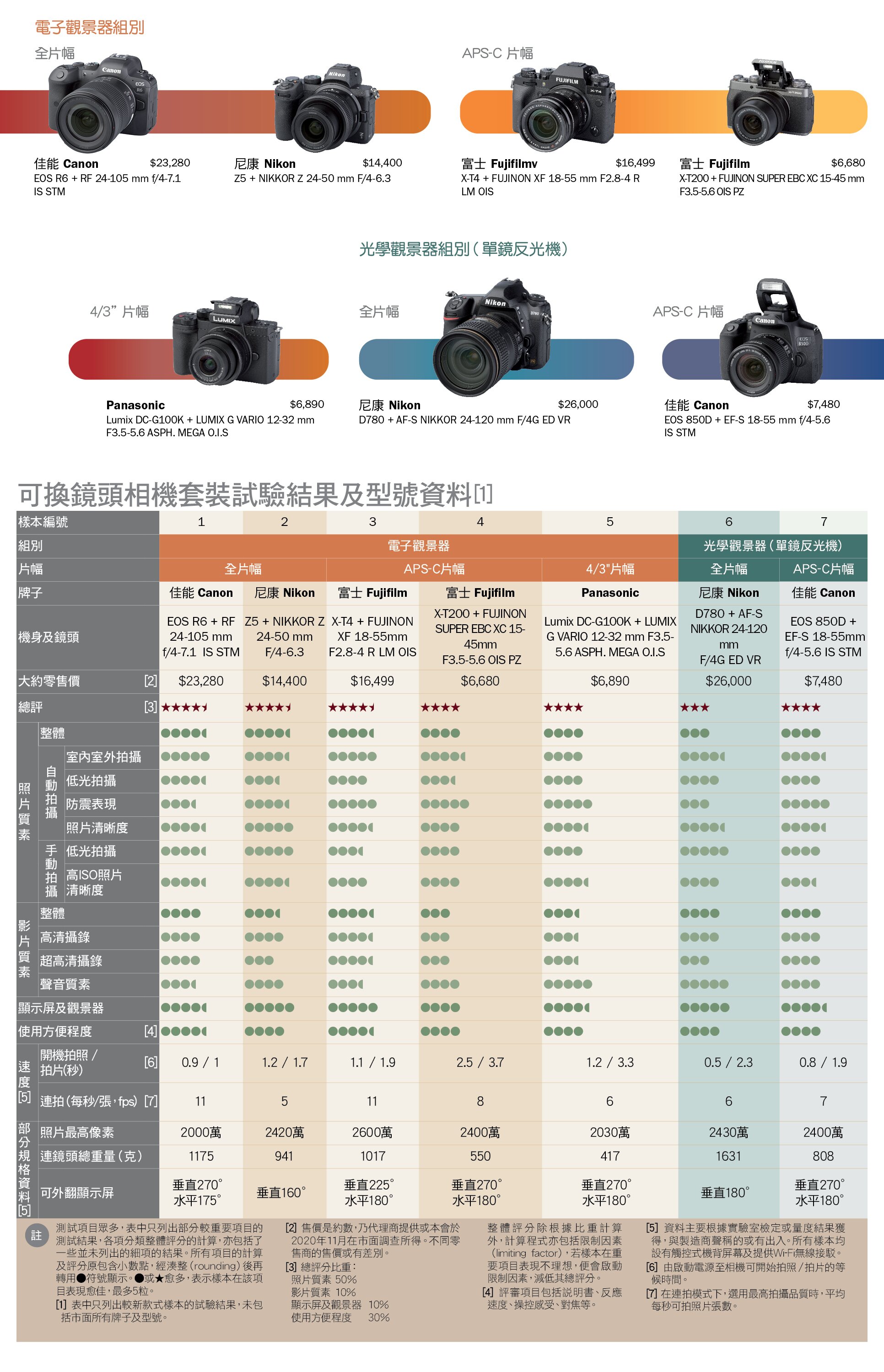 聖誕節將至,不少人或會添置新相機記錄與家人朋友共聚的時刻,或拍下街上的節日佈置裝飾。是次報告涵蓋7款可換鏡頭相機套裝,包括入門型號及高階型號,價格由$6,680至$26,000。測試發現,3款規格較高的無反機樣本的拍照表現出色,當中1款的攝錄表現出眾。不過,價格最高的1款單反機的整體表現卻平平。