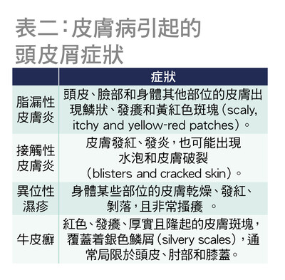 油性頭皮屑是由於皮脂分泌過剩,或是其他病因如真菌感染和脂漏性皮膚炎等,形成油膩、淡黃色的頭皮屑,造成頭皮發癢和發炎的情況。消費者可選用含去屑活性成分的洗頭水以改善油性頭皮。