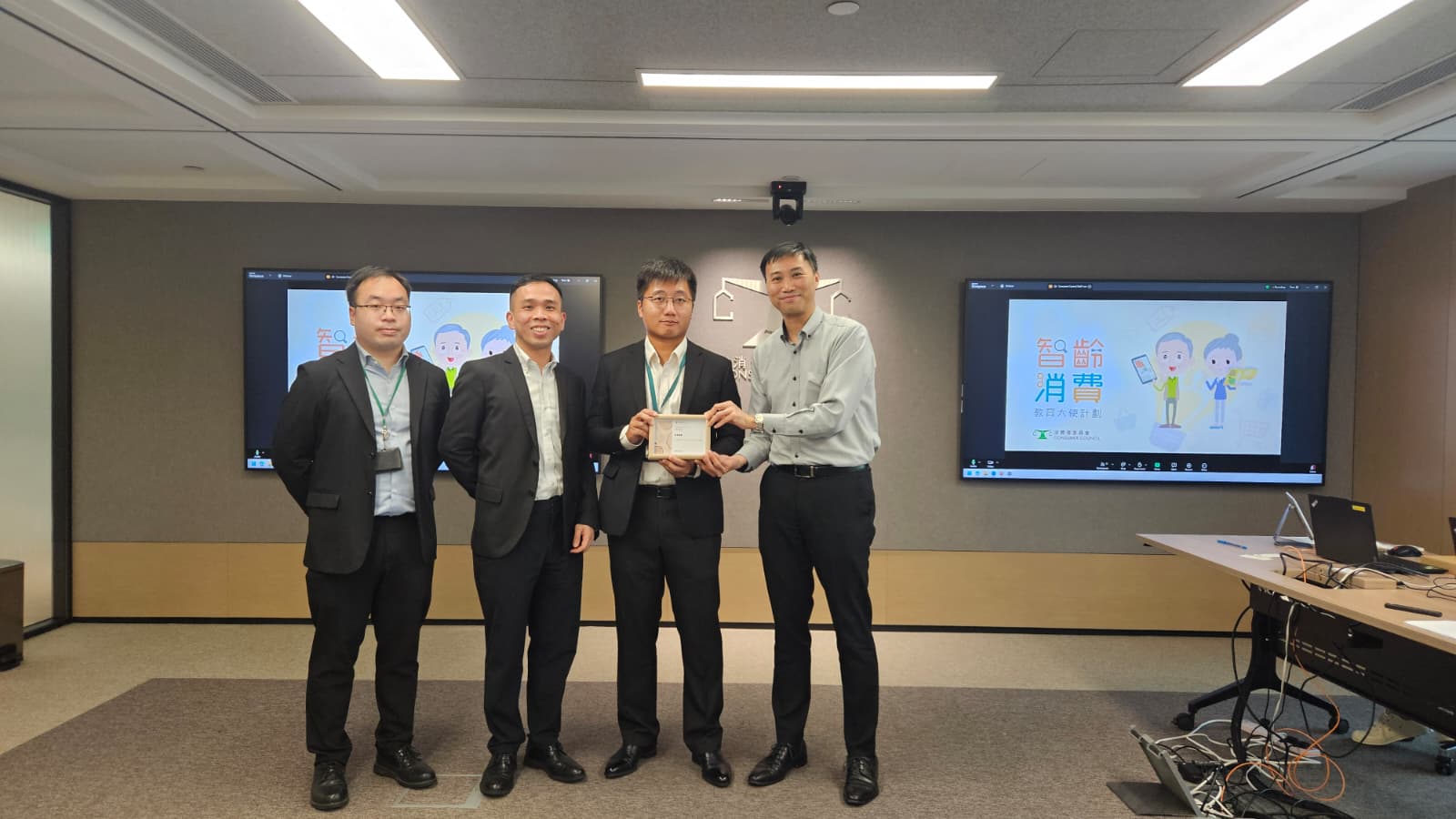 消委會主席林定國資深大律師及總幹事黃鳳嫺女士頒發感謝狀及紀念品予合作機構代表,以感謝他們對本計劃的支持。陳智思議員亦為23位「智齡消費教育大使」及60多位「智齡消費支援網絡成員」頒發證書,以嘉許他們於過去一年的付出和努力。他們除了接受一系列的消費者教育培訓,更積極參與義務工作,為社區長者主持消費權益講座,發放有用的消費資訊,協助他們提升自我保護能力。