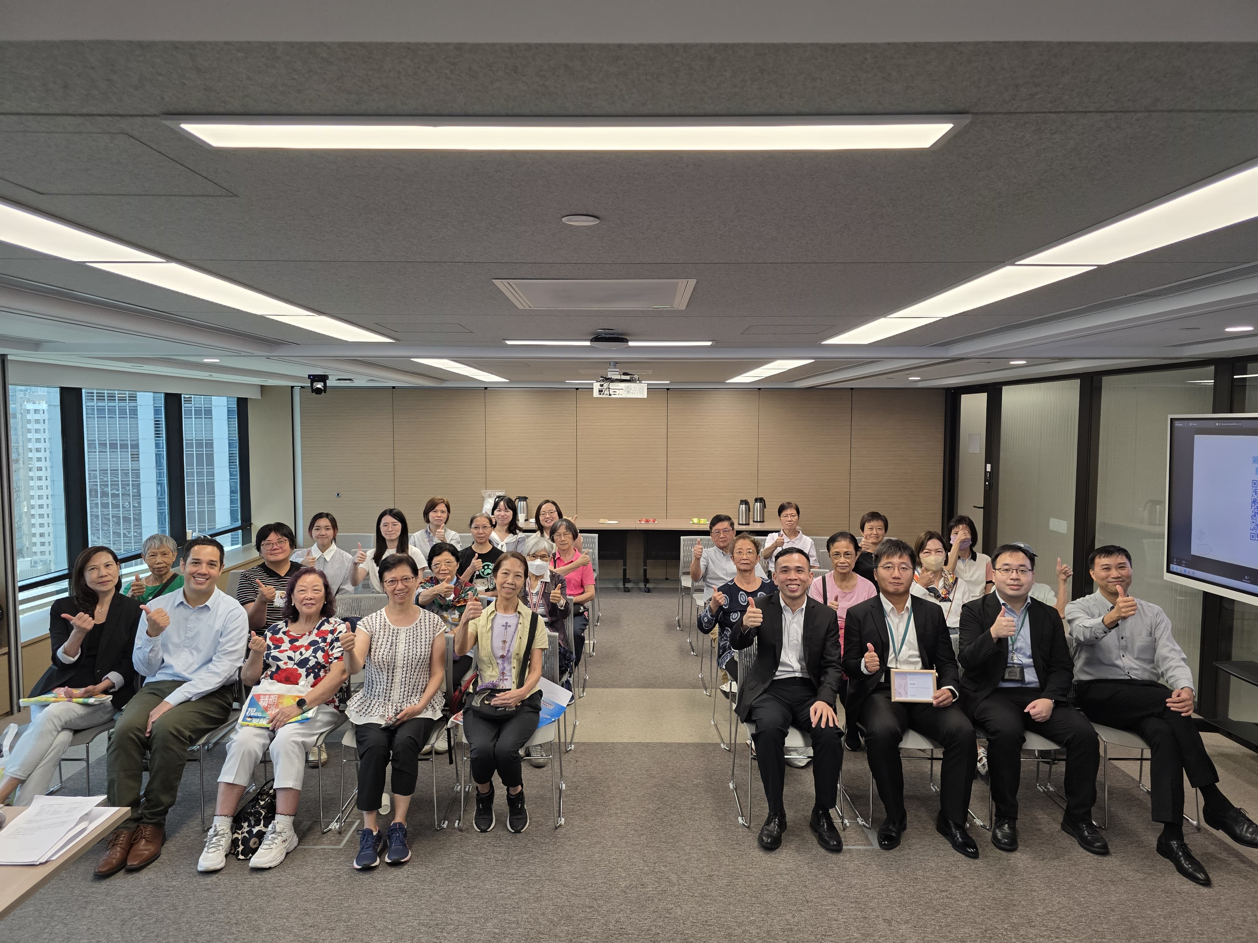 一眾「智齡消費教育大使」、「智齡消費支援網絡成員」及合作機構代表聚首一堂,回顧計劃過去一年的成果,並共同展望來年計劃的發展方向。兩位「智齡消費教育大使」更擔任經驗分享會的司儀。