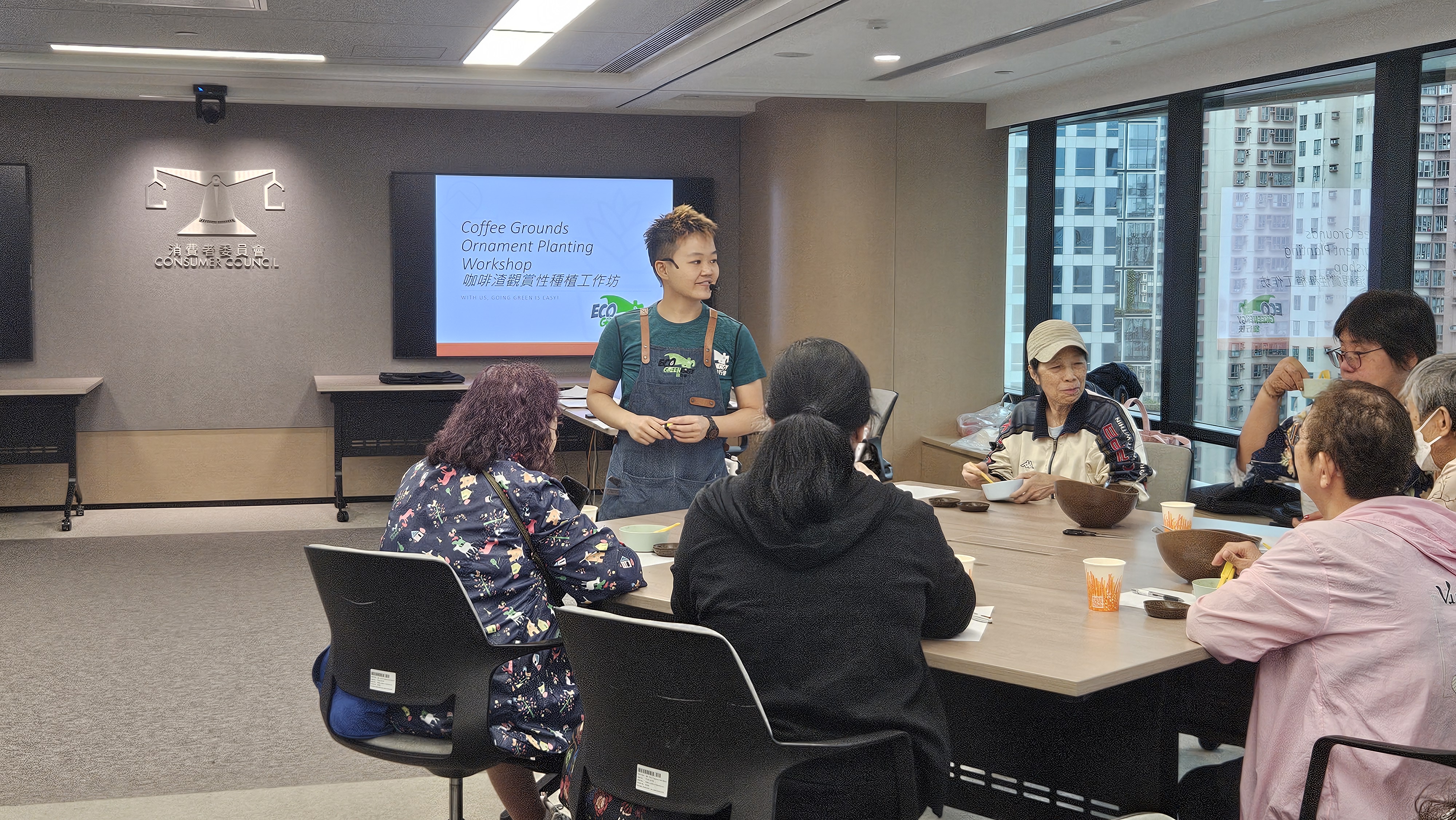 一眾關注可持續消費的「智齡消費教育大使」及「智齡消費支援網絡成員」參與由消委會和「領展可持續未來館」合辦的「綠續開餐」導賞團。