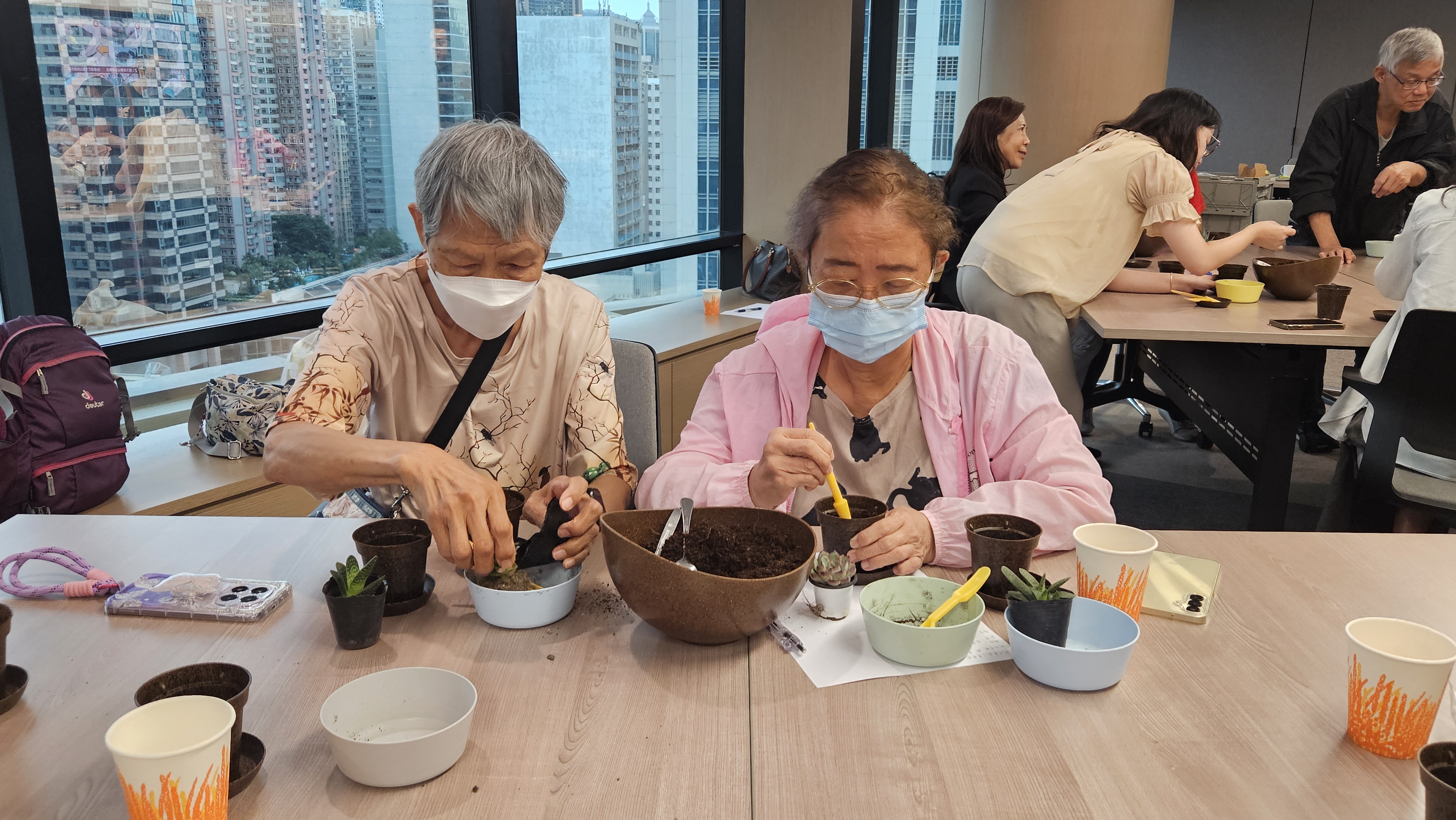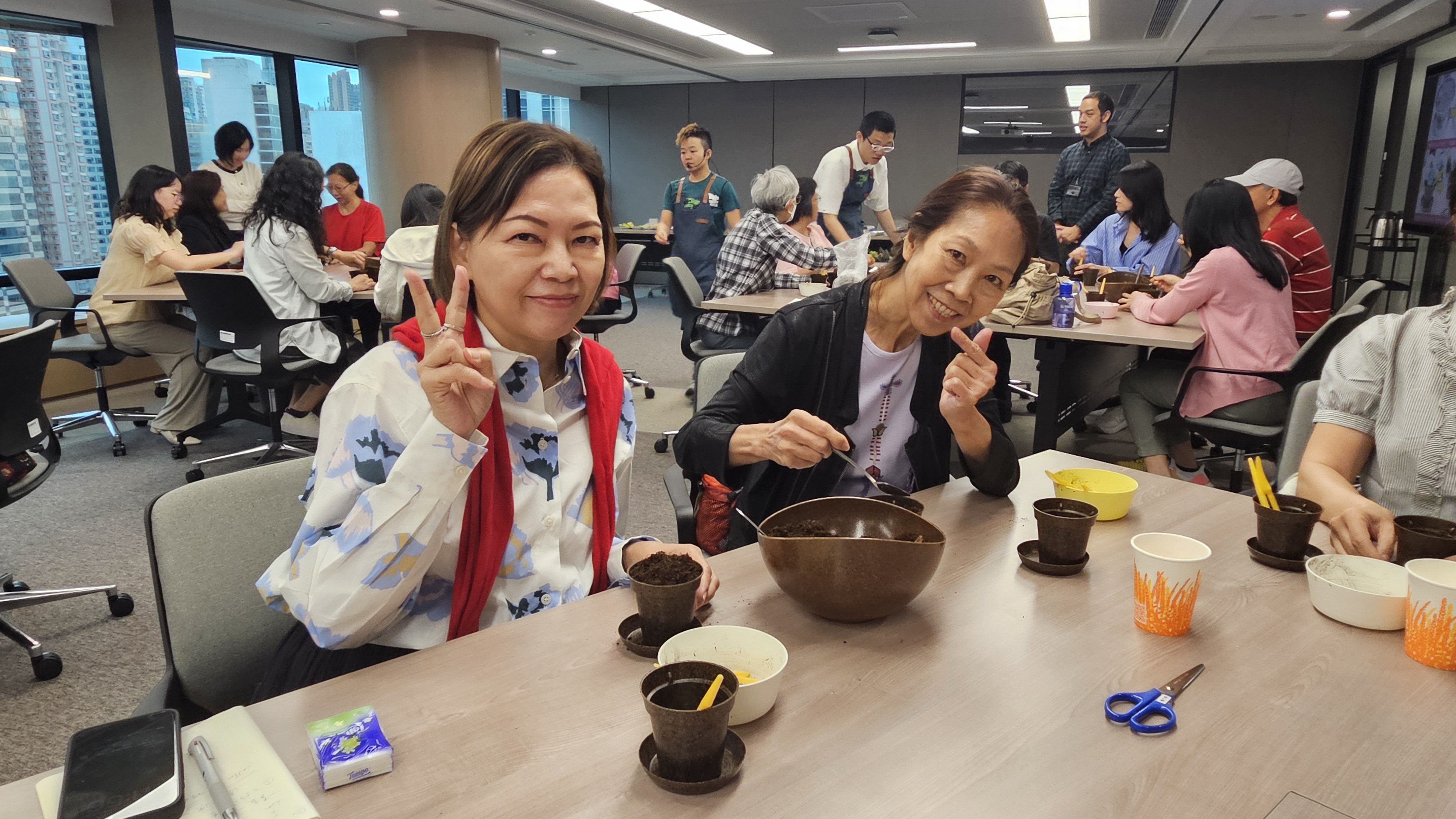 此外,本會以別開生面的方式和參加者介紹可持續生活及健康飲食妙法。除分享實踐綠色生活及素食養生貼士外,亦聯同環保社企「“Eco-Greenergy” 綠行俠」舉辦咖啡渣觀賞植物種植工作坊,介紹咖啡渣回收及用途,並安排參加者親身體驗將植物移植至由咖啡渣烘乾壓製而成的環保花盆。