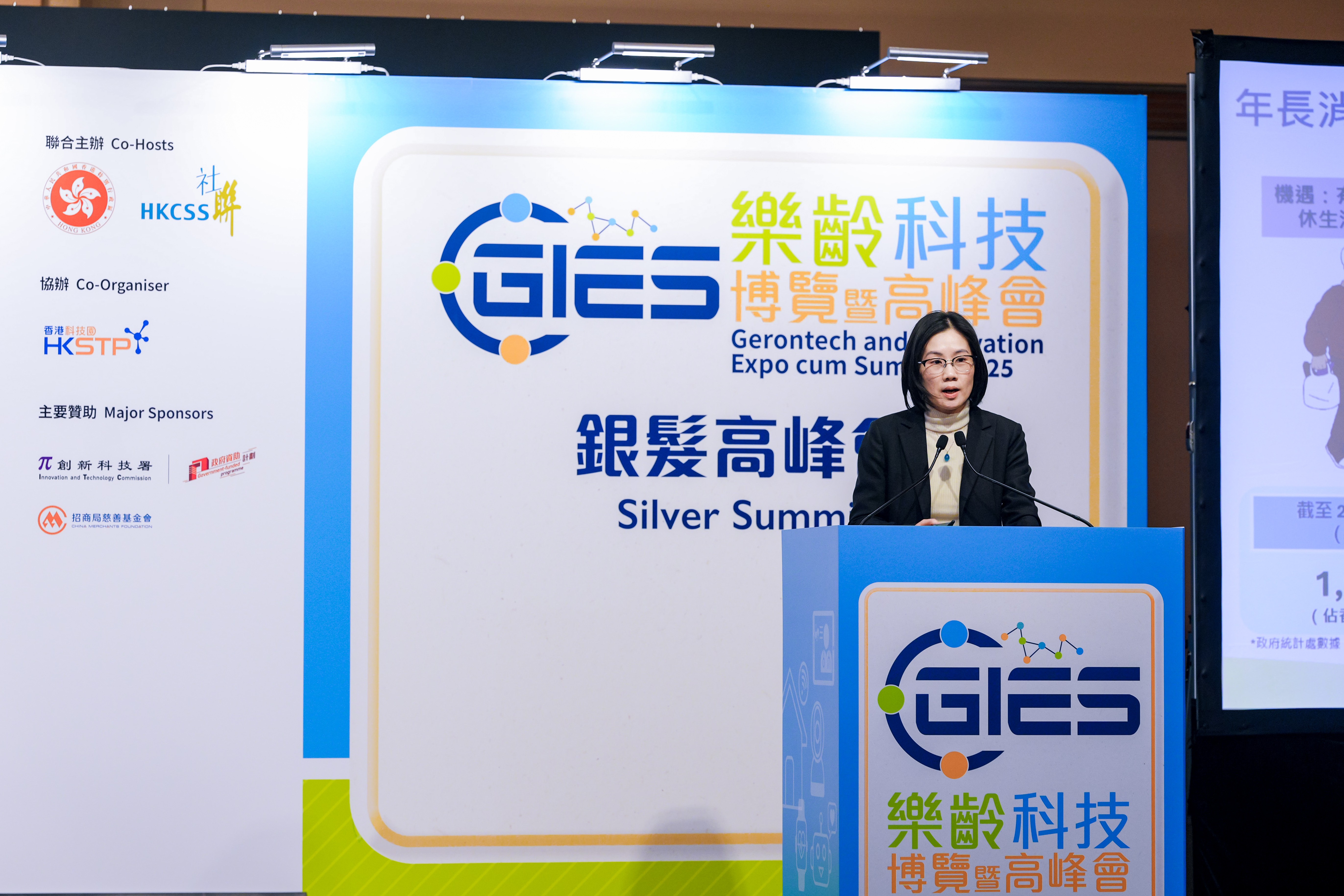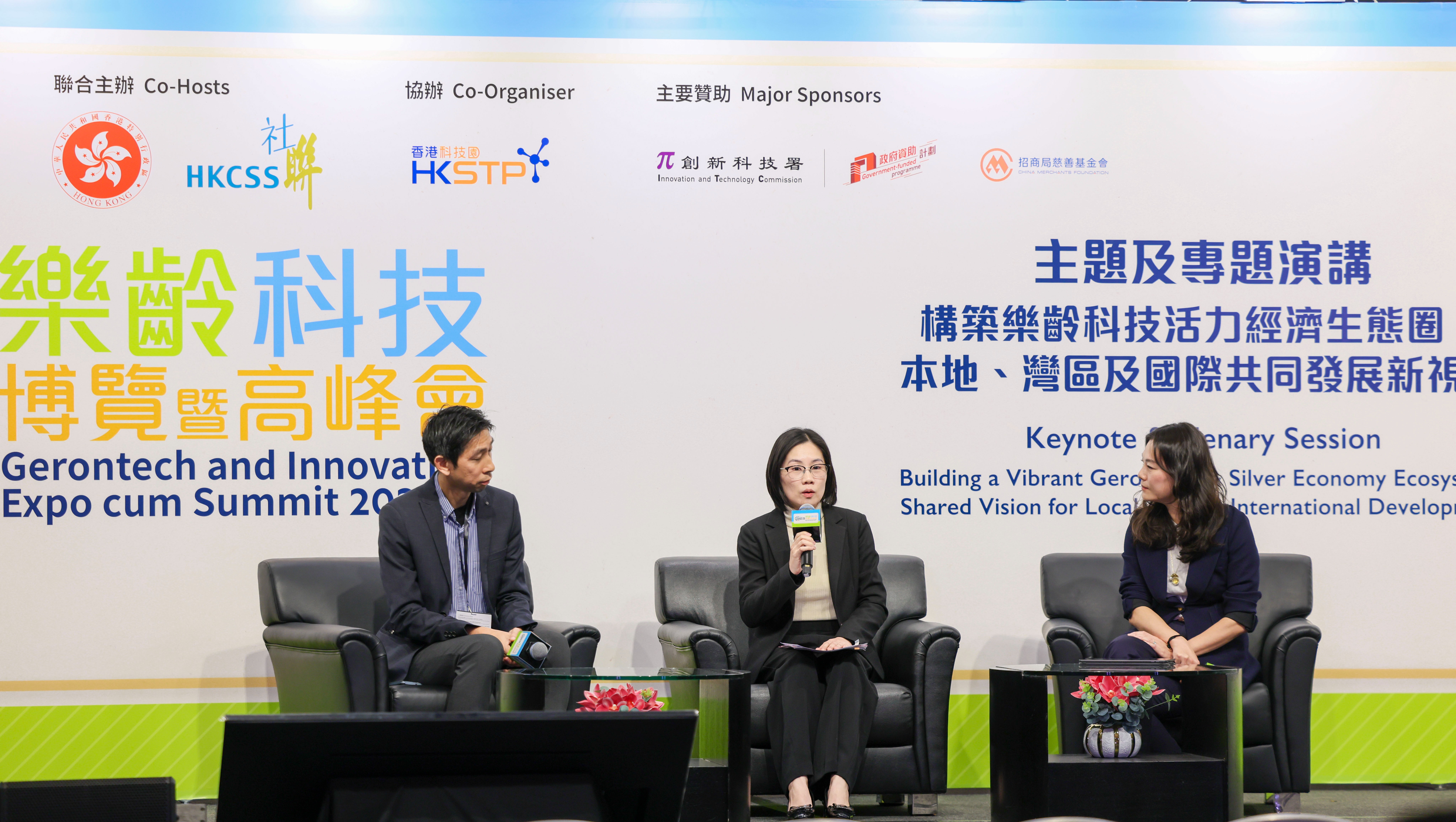 此外,同場於11月21日下午舉行的銀髮高峰會《「構築樂齡科技活力經濟生態圈:本地、灣區及國際共同發展新視野」 》中,本會代表獲邀發表題為「銀髮友善消費新趨勢:機遇與挑戰」的專題演講,剖析銀髮族在本地消費市場上遇到的各種挑戰,並預告本會未來強化「銀色消費」資訊的計劃,與各界共同構建樂齡友善消費。會上,本會代表亦與社聯代表及另一嘉賓講者,就促進長者善用科技進行退休規劃交流意見,並提出與伙伴合作加強理性消費相關培訓、推廣防騙教育等建議,共建銀髮友善的消費市場。