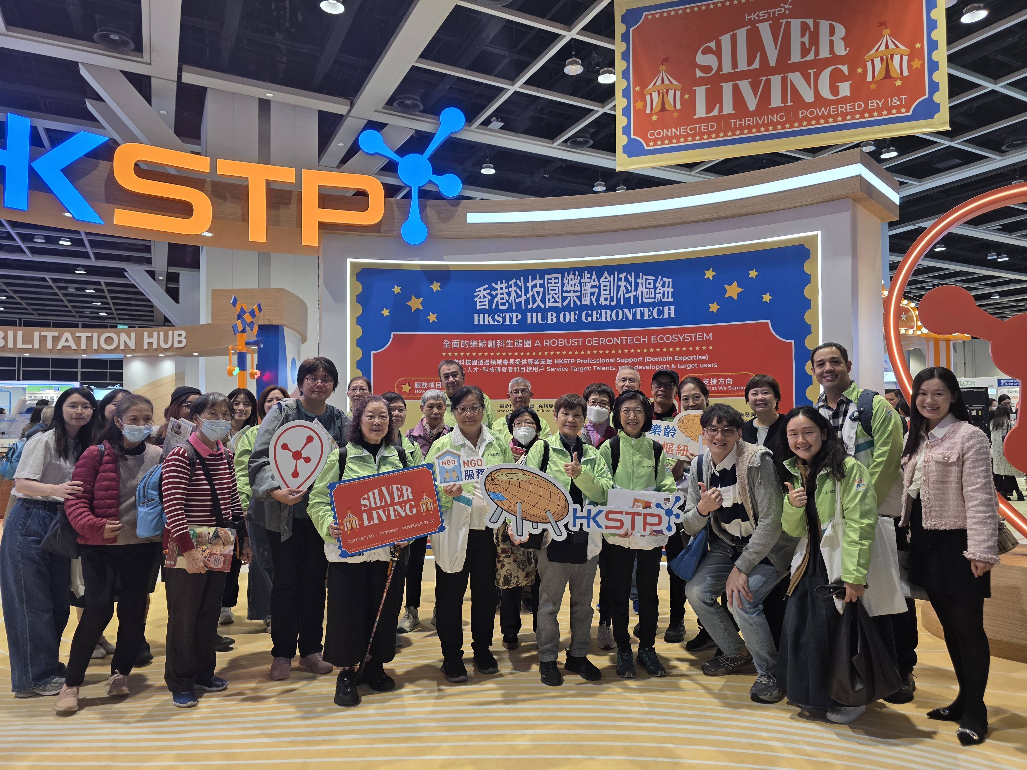 當日參觀了四大特色主題館,包括「智慧健康老齡化」、「遠程復康訓練平台」、「樂齡科技應用評估體驗」及「照護食」,並試玩各種樂齡科技產品、試食專為吞嚥困難人士製作的美味軟餐,讓大家透過近距離接觸和試用創新科技,掌握樂齡科技產品及服務的最新資訊。