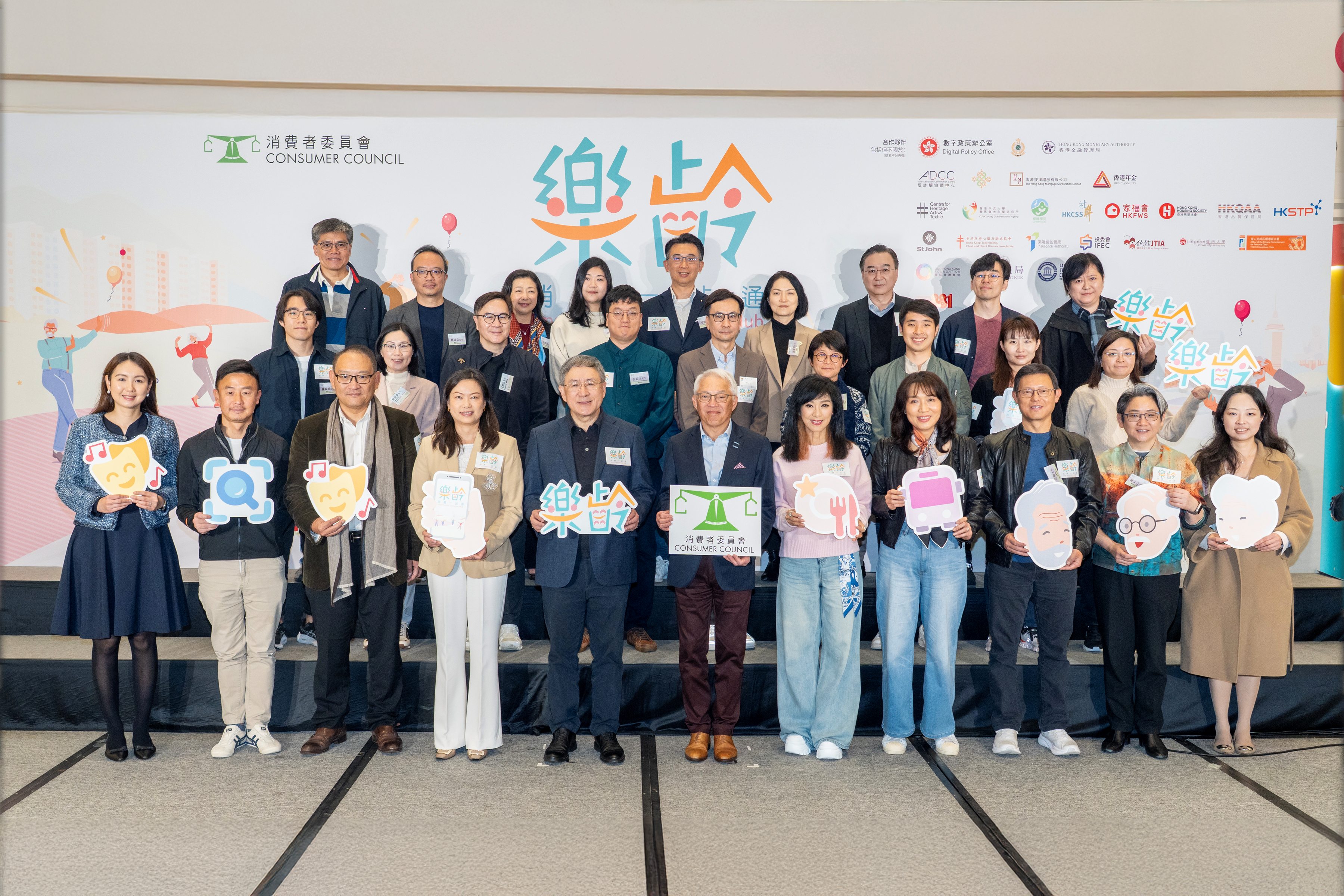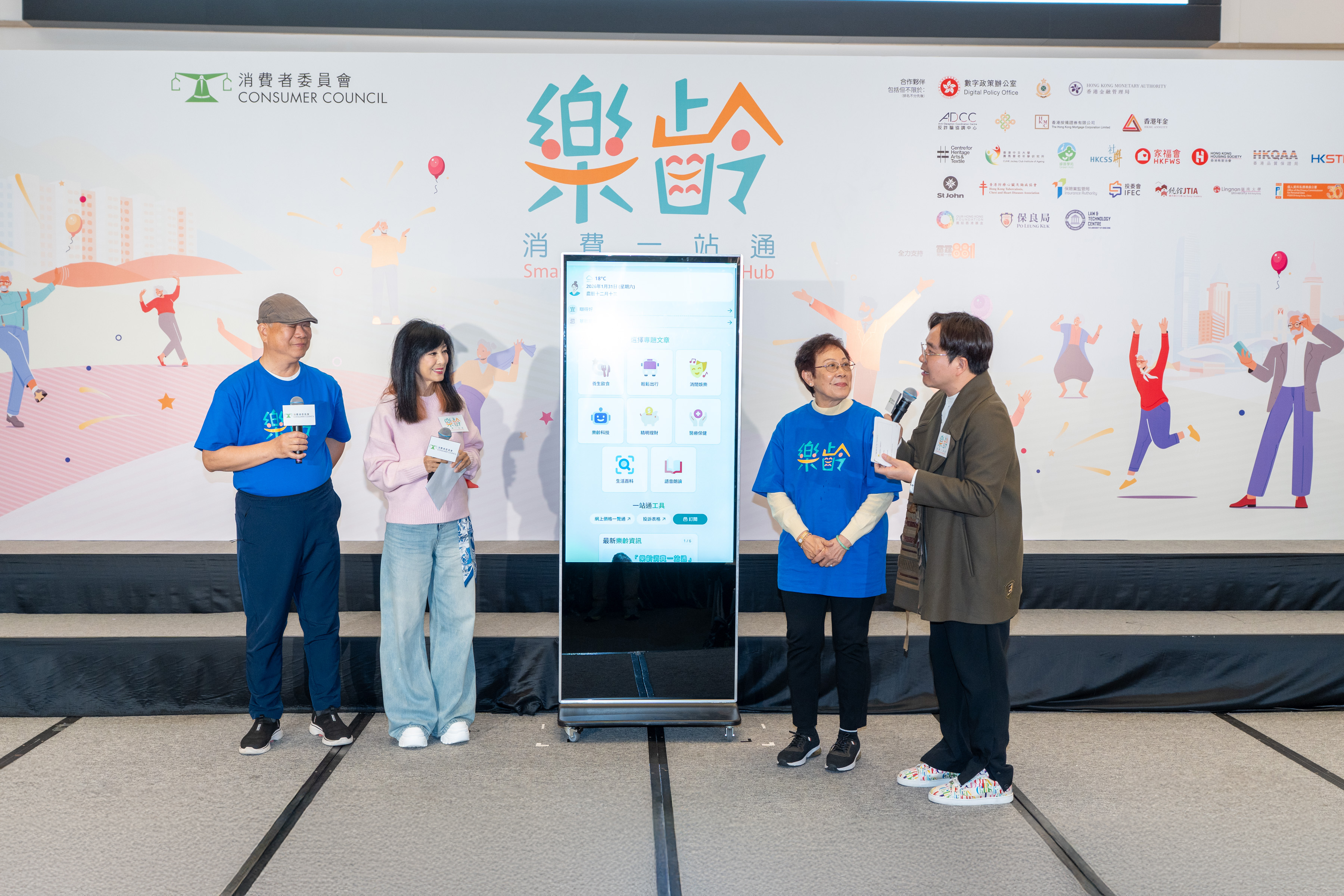 為配合政府推動銀髮經濟,協助樂齡人士作出精明消費選擇,本會正式推出「樂齡消費一站通」資訊平台,為長者、其家人及照顧者提供方便易明的實用消費資訊,並於2026年1月31日於大角咀奧海城2期商場舉行「樂齡消費一站通」啟動禮。活動由政務司副司長卓永興先生和消委會主席陳錦榮先生擔任主禮嘉賓,並獲商務及經濟發展局常任秘書長黃少珠女士、消委會總幹事沈朝暉博士及超過36個合作夥伴代表出席,共同見證平台誕生。活動更邀得明星嘉賓米雪小姐聯同「樂齡消費教育大使」示範及講解平台操作,協助長者及大眾隨時掌握實用資訊。
