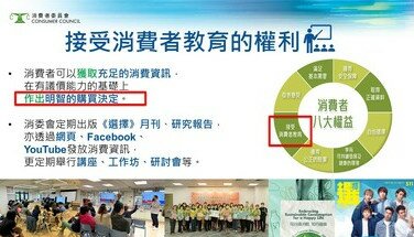 消委會積極為各社福機構/學校舉辦導師培訓和家長講座,或為學員/學生舉辦「提升消費者自我保護能力」工作坊。今年,本會開拓更多消費相關內容以配合各界需要,並與香港警務處兩大部門合作,分別是網絡安全及科技罪案調查科和反詐騙協調中心,藉著資源共享,加強推廣防騙資訊。