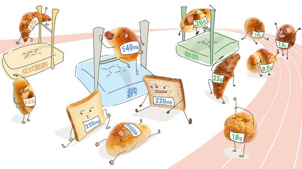 本會聯同食物安全中心測試10種麵包的鈉、總脂肪及反式脂肪含量,發現以個別麵包計,2款腸仔包樣本的鈉含量最高,進食1個的攝取量為世衞建議每日限量的27%;總脂肪含量最高的是2款雞尾包,進食1個的攝取量為建議每日限量的39%;反式脂肪含量最高的是1款牛角酥,進食1個的攝取量為建議每日限量的33%。