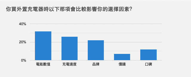 雖然外置充電器的電能數值愈大,供電量愈多。但外置充電器使用時,電路板會損耗一些電能,所以量得的輸出電能,往往比標示的低。