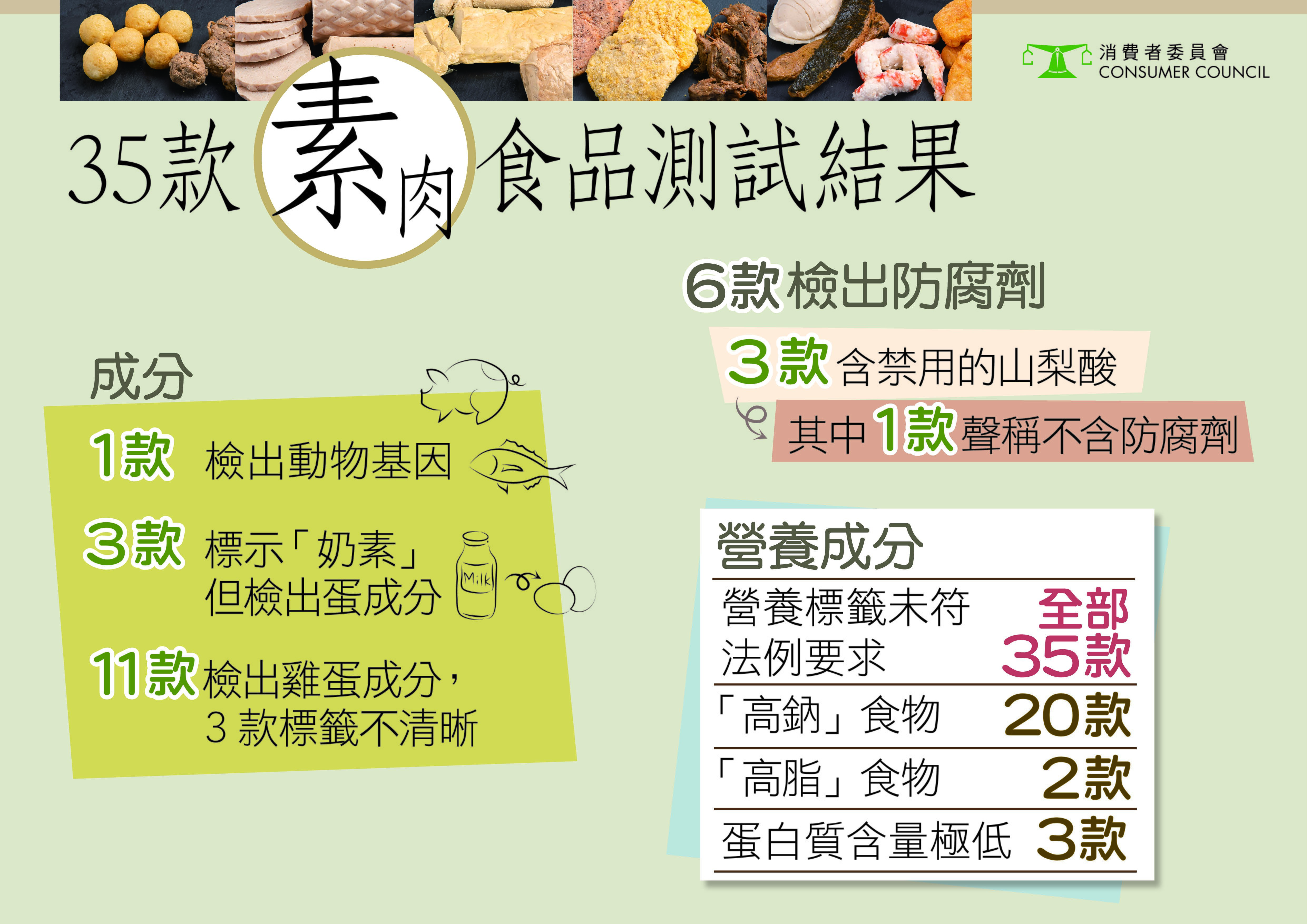 然而,產品包裝上的標示有時不能盡信。消委會在檢測素肉時,就曾發現有商品說明不符,標籤上列明「100%純素食品」,但同時又列有「本產品含牛奶及蛋類成分」,互相矛盾。